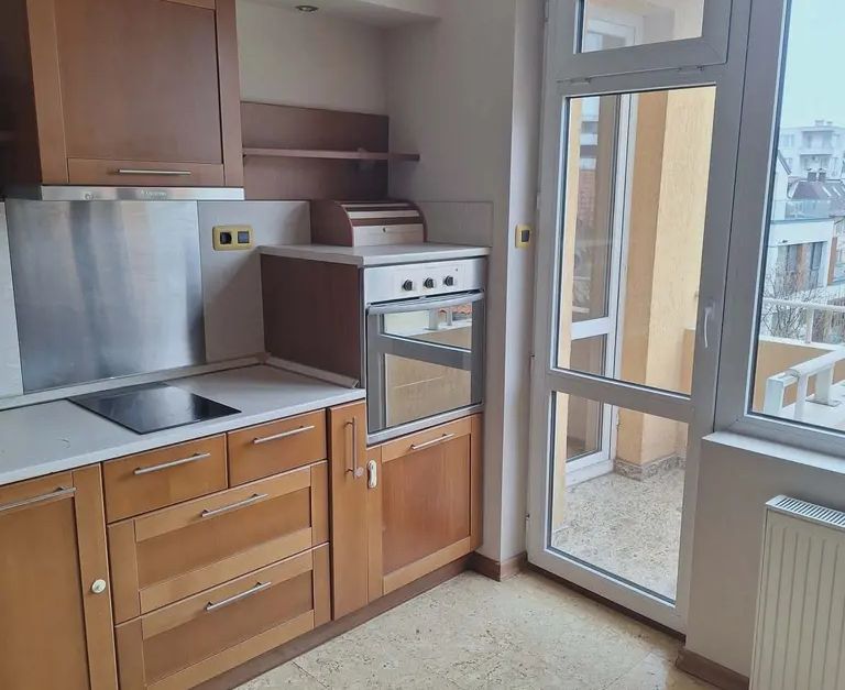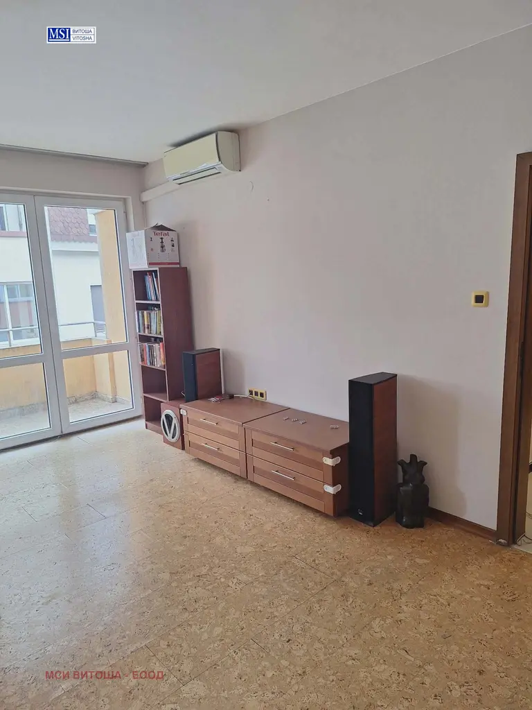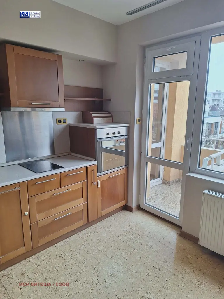 МСИ Витоша предлага за наемане просторен тристаен апартамент, намиращ се в жилищна сграда в комуникативен район в кв. Манастирски ливади. Апартамента е обзаведен, с оборудван кухненски бокс. Състои се от антре, дневна стая с кухненски бокс, спалня с баня и тоалетна и гардеробно помещение, детска стая, баня с тоалетна и три тераси. Отопление - с индивидуален газов котел. Сградата е в режим на етажна собственост с добре поддържани общи части. Към апартамента има възможност да се наеме допълнително голям гараж около 30 кв.м с наем 230 евро.