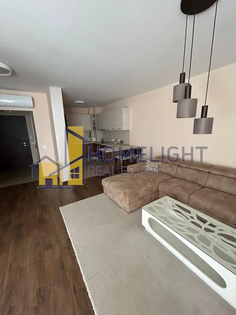 Апартаментът е напълно обзаведен и оборудван с всичко необходимо за едно домакинство и е готов за нанасяне.