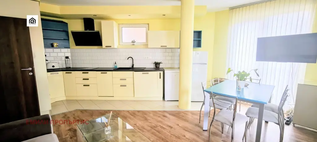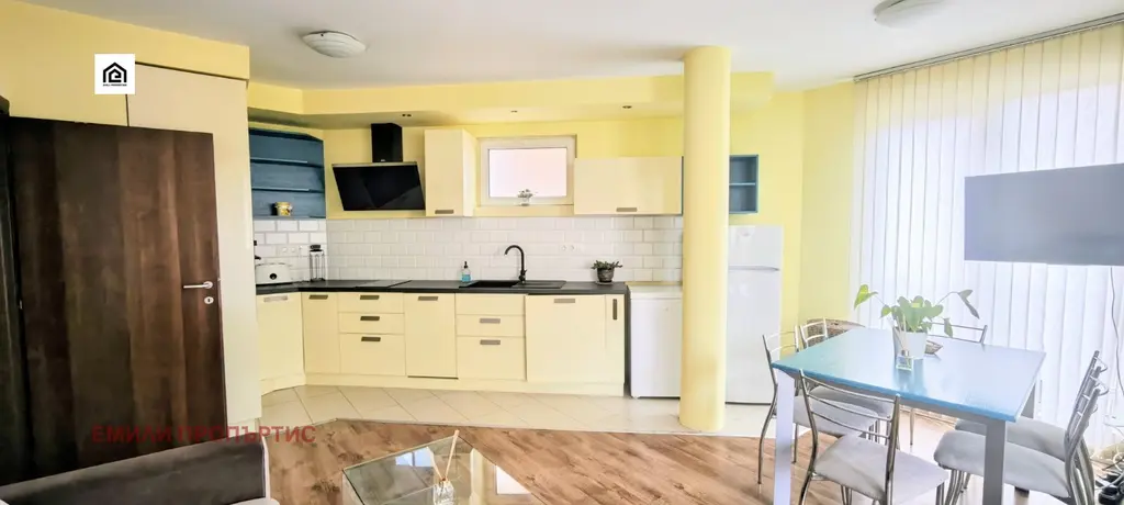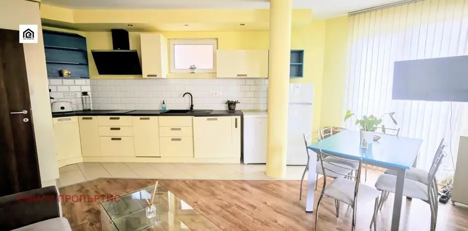 В отлично състояние!!! Двустаен непреходен апартамент в поддържана тухлена кооперация. Разпределение: коридор, баня с тоалетна, дневна с кухненски бокс, спалня, голяма тераса. Вградена кухня с всички електроуреди, мека мебел, спален комплект. Отопление-ТЕЦ, климатик. Отлични общи части на сградата, котролиран достъп. За контакт и оглед: Емилия Нанева-0894418511, 0899995927