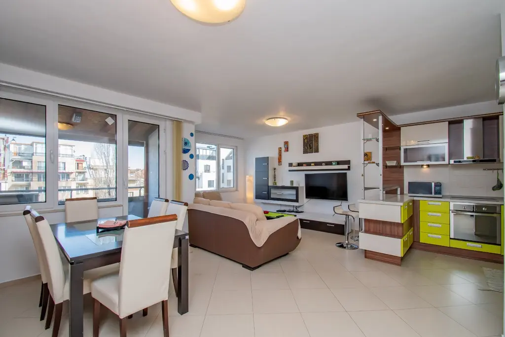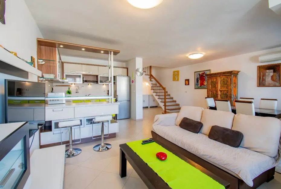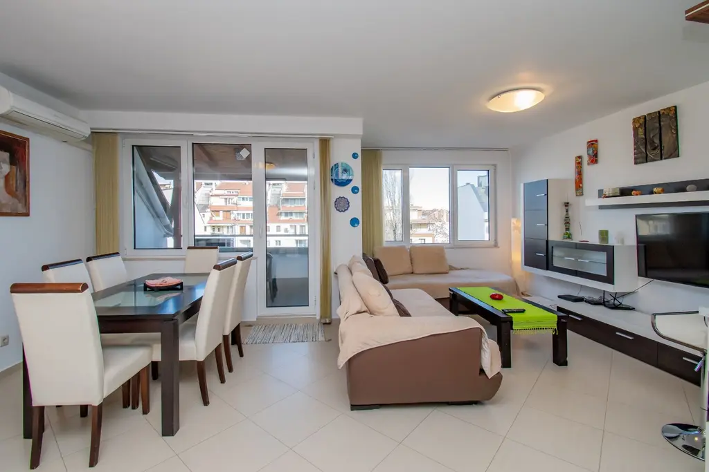 AI обобщениеИмотът е мезонет с площ от 115 кв.м, разположен на последния етаж в сграда в Центъра на София, на ул. Овче поле. Разпределението включва коридор, кухня с хол и трапезария с тераса и тоалетна за гости на първото ниво, както и две спални с тераси, баня с тоалетна, дрешник и мокро помещение на второто ниво. Сградата разполага с асансьор, видеонаблюдение и контролиран достъп, а имотът е реновиран и оборудван с необходимите комуникации. Локацията е в тиха улица с вътрешен двор, осигуряваща спокойствие в централната градска част. Предлага се и гараж с площ около 20 кв.м. Имотът е подходящ за живеене в градска среда с удобства и сигурност, комбинирани с функционално разпределение.