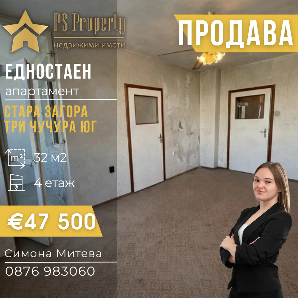 PS Property продава едностаен апартамент намиращ се в кв. Три чучура-юг