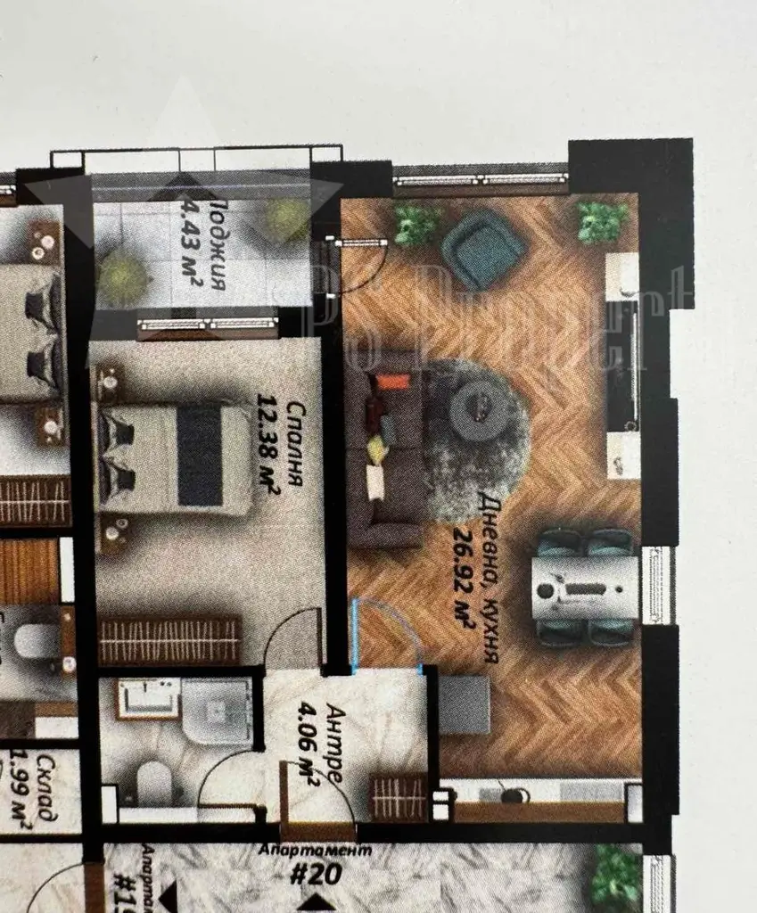 Характеристики: Апартаментът се състои от входно антре, всекидневна с излаз към тераса, спална, баня с тоалетна и склад. Сградата е с контрол на достъп и асансьор. Подходящ е както за инвестиция така и за живеене!