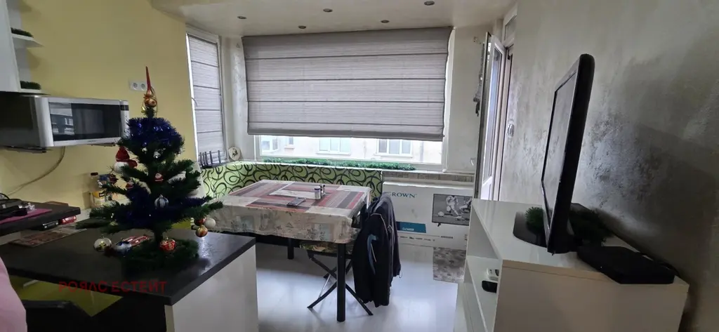 Продава двустаен апартамент. Имота с изложение юг на средене етаж. Състои се от всекидневна с кухненски бокс, спаланя и санитарен възел. За повече информация и огледи: 0898504905