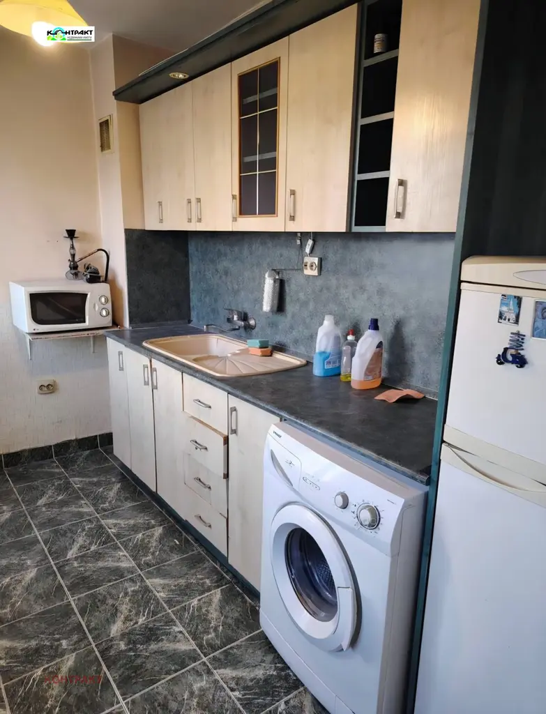 Продава две стаи с бокс, ЕПК, 52 кв. м, етаж 7/8, разпределение: всекидневна с кухненски бокс, спалня, баня и тоалетна, мокро, тераса, изложение юг. За повече информация и огледи 0888/448432; 0877/887325