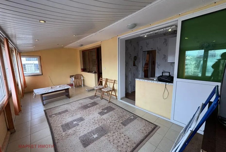Маркет Имоти предлага за продажба двустаен апартамент в широк център. Жилището е с 63 кв.м чиста площ плюс 30 кв.м голяма, просторна, закрита и остъклена тераса, обособена като хол с кухненски бокс.
