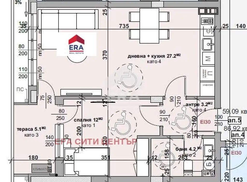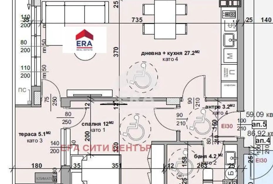 ЕРА Сити Център продава двустаен апартамент, ново строителство, Самара-3 . Състои се от входно антре, всекидневна с бокс, спалня, тераса, етаж втори. Застроената площ на имота е 59 кв. метра, площта с общите части е 66 кв. метра. Изложение запад, с А14. Жилището е в сграда с луксозни общи части. Продава се на циментова замазка, шпакловка, изводи на ВиК и ел. Местоположение в кв. Самара-3 с изградена инфраструктура, магазини, детска градина.