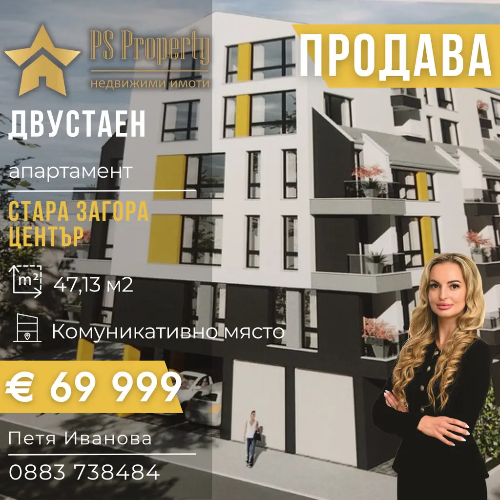 PS Property предлага двустаен апартамент, намираща се на комуникативно място в близост до хранителни магазини, спирки на градския транспорт, училища и други.