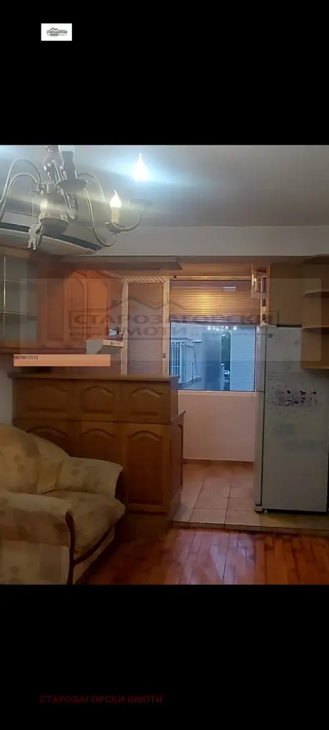 Старозагорски имоти продава монолитен апартамент, обзаведен. С изглед към тих вътришен двор. Състои се от всекидневна с кухненски кът,една спалня, баня с тоалетна, тераса. На първи висок етаж. При интерес посочете код: 6795