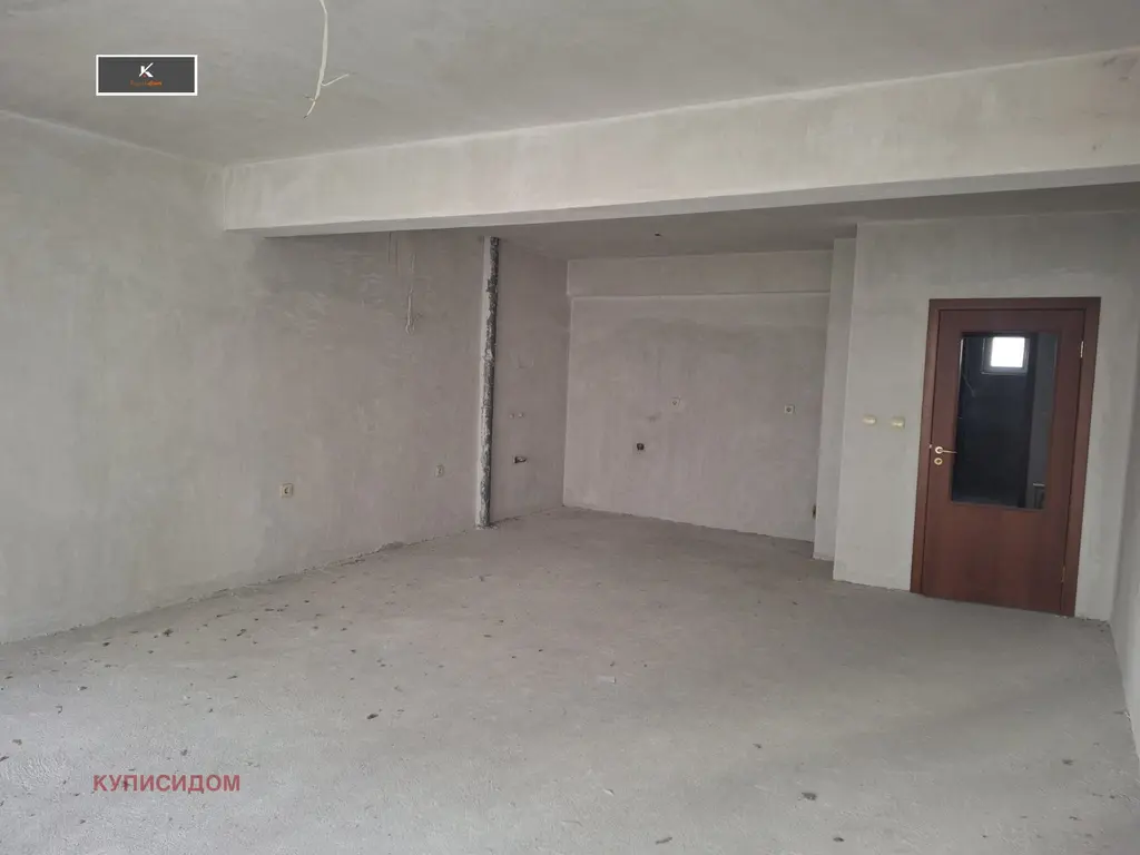 Апартаментът е със застроена площ от 84 кв.м, а с общите части 99 кв.м. Предлага се на шпакловка и замазка, с: