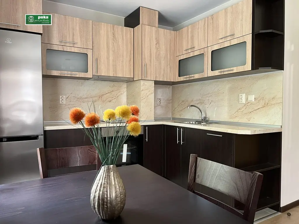 Рока имоти предлага за продажба обзаведен двустаен апартамент в кв. Казански. Жилището се намира на четвърти жилищен етаж в сграда ново строителство от 2021г. Състои се от антре, уютно обзаведена спалня с излаз към североизточна тераса, баня с тоалетна и просторна всекидневна с кухнеска част с източно изложение. Обзавеждането и оборудването са с качествени материали и нови,неизползвани ел.уреди.