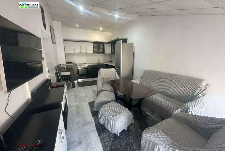 Продава две стаи с бокс, тухла, 58 кв. м., етаж 5/5, разпределение: всекидневна с кухненски бокс, спалня баня и тоалетна, тераса и таван- 7 кв. м. Изложение изток. Апартамента се продава с цялото обзавеждане и оборудване. За повече информация и огледи 0888/448432; 0877/887325.