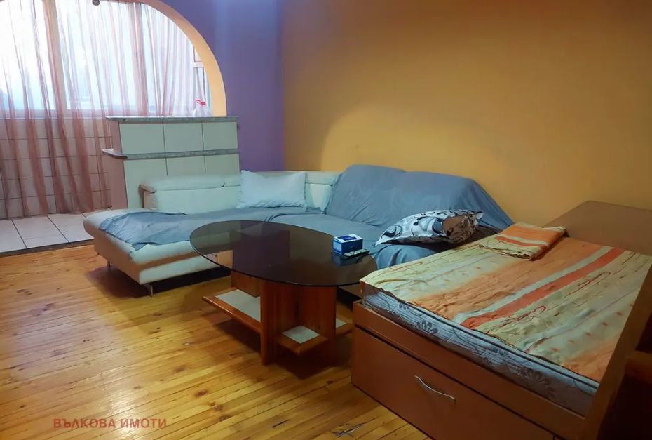 ВЪЛКОВА ИМОТИ продава напълно обзаведен апартамент, в района на Окръжна болница, гр. Стара Загора, старо/ ново строителство, на етаж четвърти. Състои се от входно антре, всекидневна с кухненски бокс / приобщена е терасата/, санитарен възел, една самостоятелна спалня, и на второ ниво- приобщена таванска стая към апартамента. Достъпът до втората спалня на второ ниво е посредством дървена стълба, няма преходна площадка между двете нива, с директен достъп- отвор в плочата. Обзаведен и оборудван с всички необходими мебели и електроуреди, има две спални, две единични легла, кухненско оборудване, мека мебел, гардероб, секция, печка, хладилник, климатик, пералня, два телевизора, бойлер. Изложение юг/ запад. След преустройството и приобщаването на терасата- в жилището тераса няма.