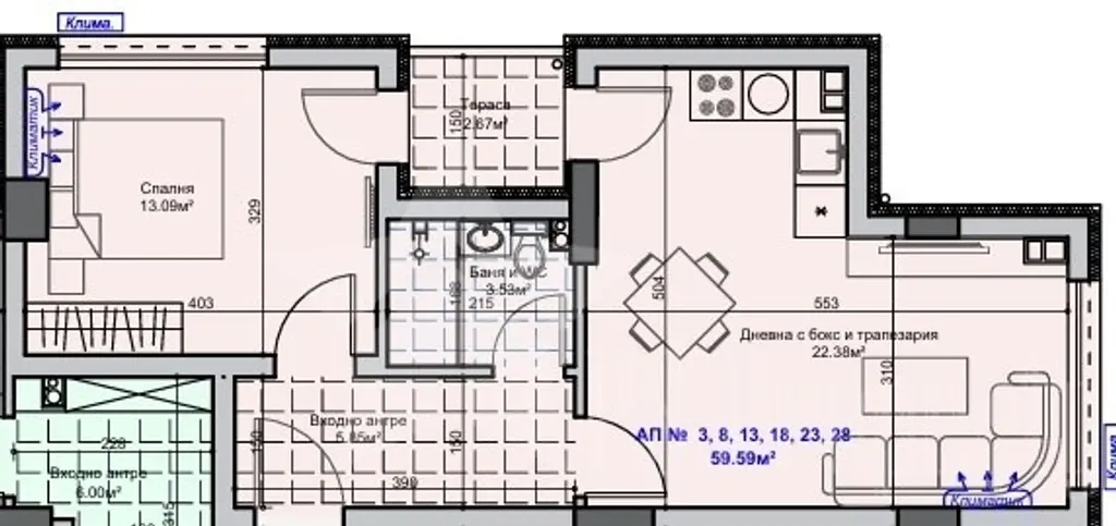 Налични двустайни и тристайни апартаменти с функционални разпределения и избор от етажи. Възможност за закупуване на гараж или парко място в сградата.