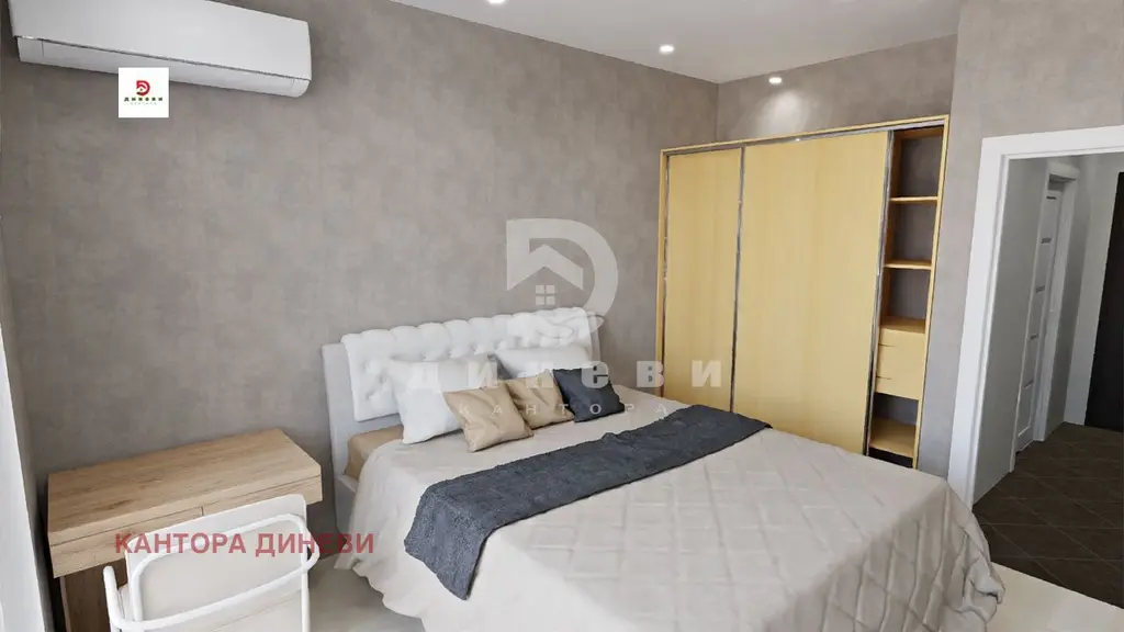 Кантора Диневи предлагаме двустаен апартамент, разположен на 5-ти от 9 етажна кооперация, с площ от 59 кв.м.. Апартамента разполага с входно антре, спалня, всекидневна с обособена кухненска част, тераса и баня с тоалетна. Сградата е преди Акт 14 и се изпълнява от качествен и доказан строител с утвърдено име на пазара.