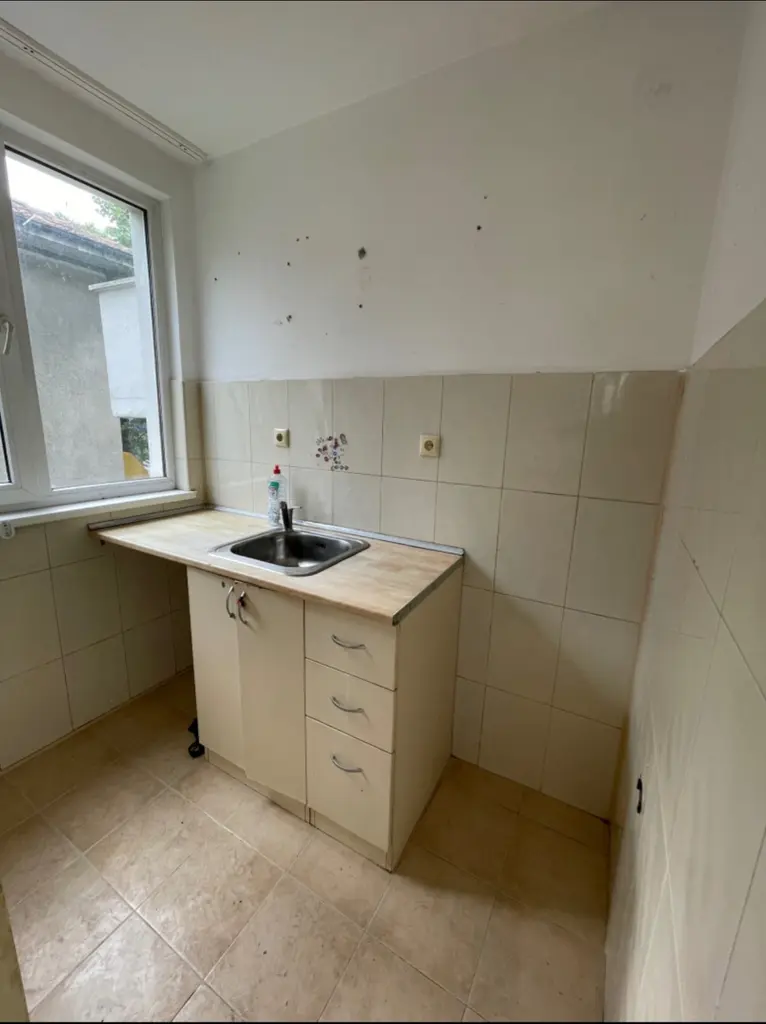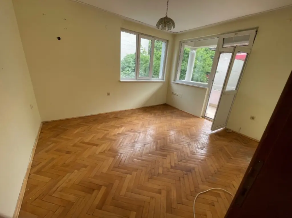Имота е с подменени дограми, естествен паркет, висок таван. Предлага се необзаведен.