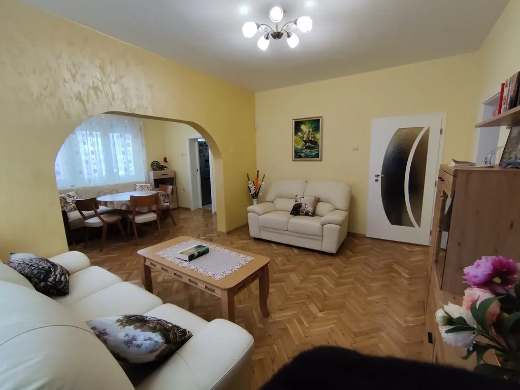 Жилището се намира в нискоетажен монолитен блок, на първи етаж над работещи офис помещения. Състои се от две спални, обединени дневна, трапезария и светъл бокс, домакинско помещение, мокро помещение и общ санитарен възел. Извършен е основен качествен ремонт на всички инсталации, изцяло са подменени дограмата и вратите, остъклена е голямата тераса, а малката е превърната в помощно помещение. Всички мебели са поръчкови. В цената влиза почти цялото налично обзавеждане и оборудване. Освен посочената чиста жилищна площ, апартаментът разполага и с таван и мазе. Прекрасен имот на топ място, който предлага много повече, отколкото снимките могат да покажат!