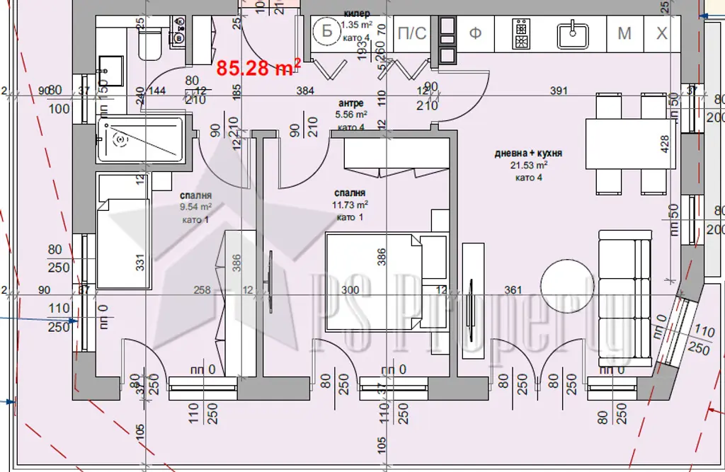Обща площ: 105 кв.м.