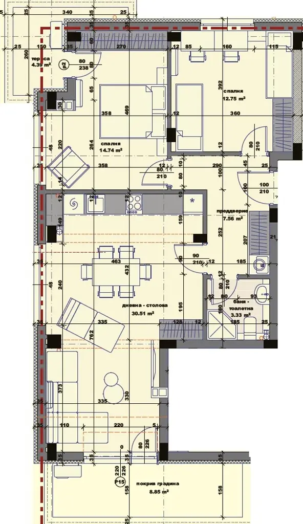 -Възможност за преустройство с три спални