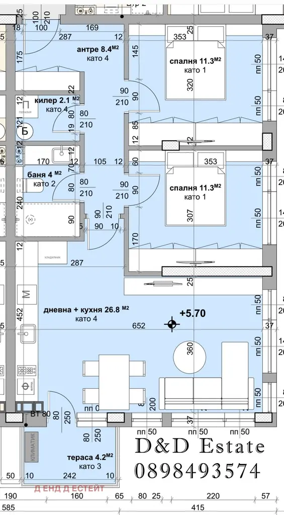 D&D Estate предлага апартамент с две спални и просторна дневна в луксозна и модерна сграда. БЕЗ КОМИСИОННА КЪМ КУПУВАЧА! Сградата е на утвърден строител в града, с гледка към парк. Предлагат се двустайни, тристайни и апартаменти с двор, които отговарят на най - високите стандарти в жилищното строителство. Възможност за закупуване на гараж! Жилищата ще бъдат издадени по БДС, с висок клас дограма, видеодомофонна система.