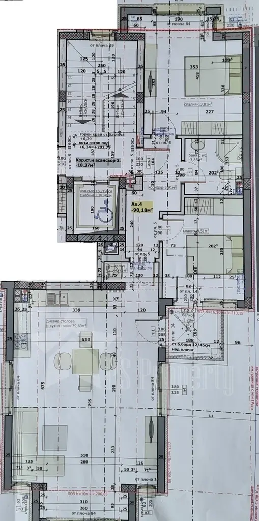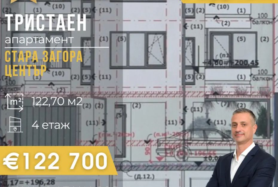 PS Property продава тристаен апартамент 123 кв.м., в модерна сграда със стилна фасада и луксозни общи части в непосредствена близост до центъра на града. Разположен на 2-ри етаж, със следното разпределение: