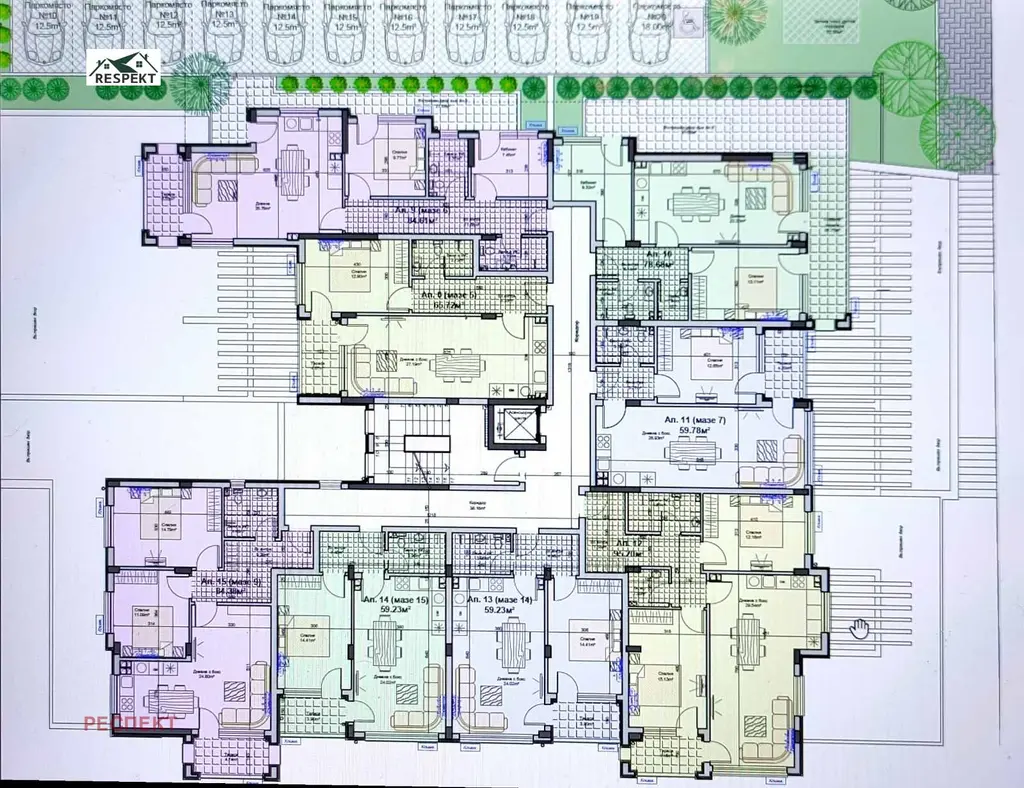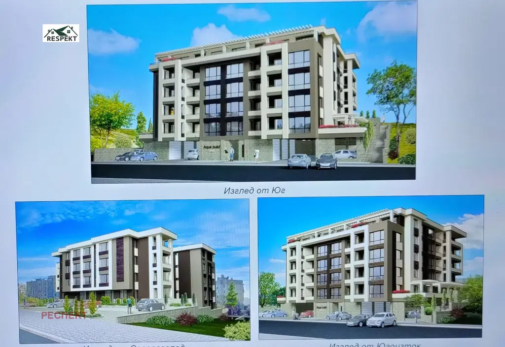 Новострояща се жилищна сграда в един от най-предпочитаните райони за живеене в западна градска част. Посочената квадратура е за апартамент, състоящ се от две спални, дневна с кухненски бокс, тераса и санитарен възел.Сградата е проектирана с 4 изложения и се изгражда в съответствие с най-високите стандарти за качество- пътнически асансьор, осигурен достъп за инвалиди,добре озеленена и оформена инфраструктура.В същата сграда има възможност за избор и на двустайни, и на тристайни апартаменти, предвидени са подземни гаражи към всеки апартамент.За повече информация, архитектурни разпределения и оглед- в офиса на Агенция Респект.