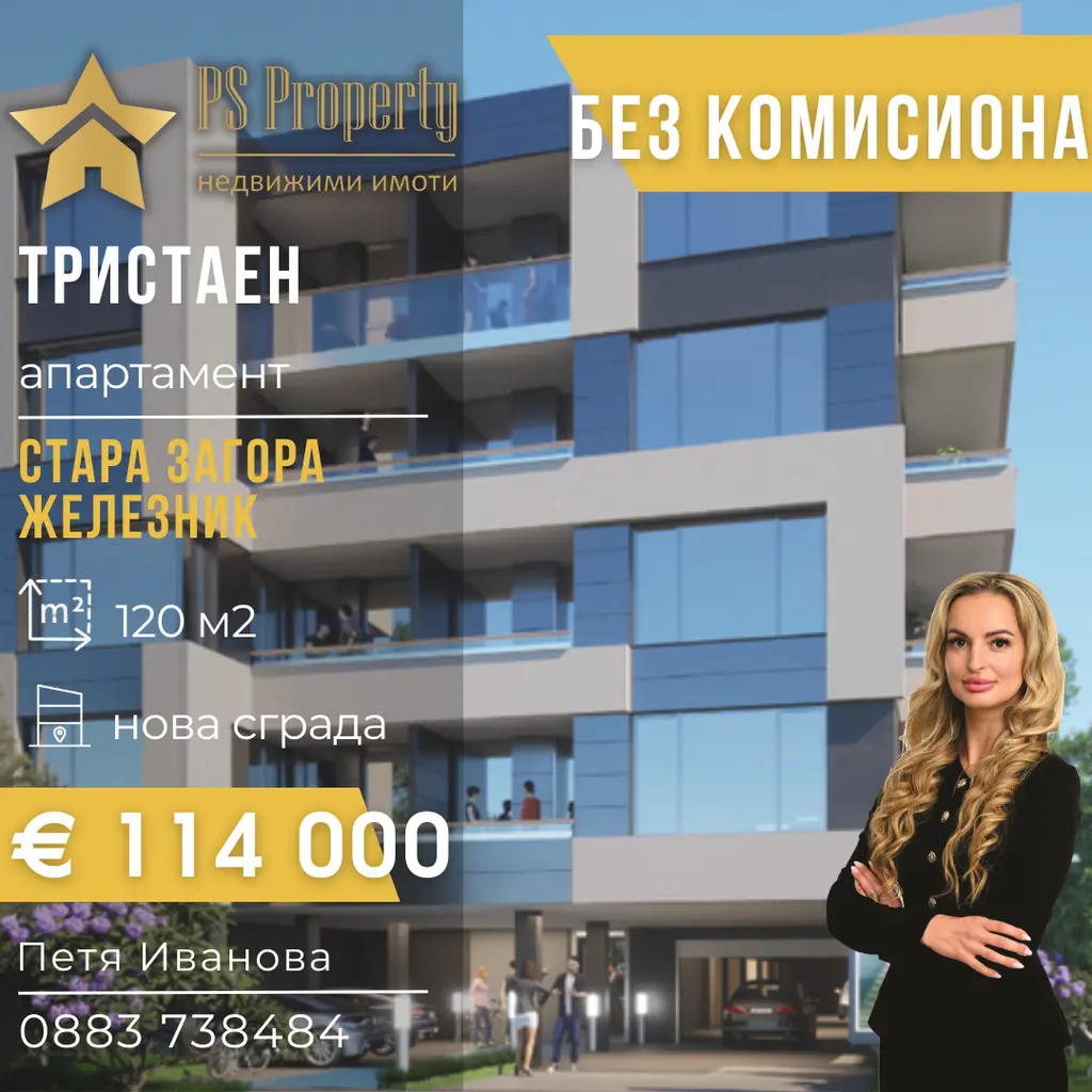 PS Property предлага БЕЗ КОМИСИОНА тристаен апартамент в новострояща се сграда, намираща се в кв. Железник в близост до хранителни магазини, спирки на градския транспорт, училища и други.