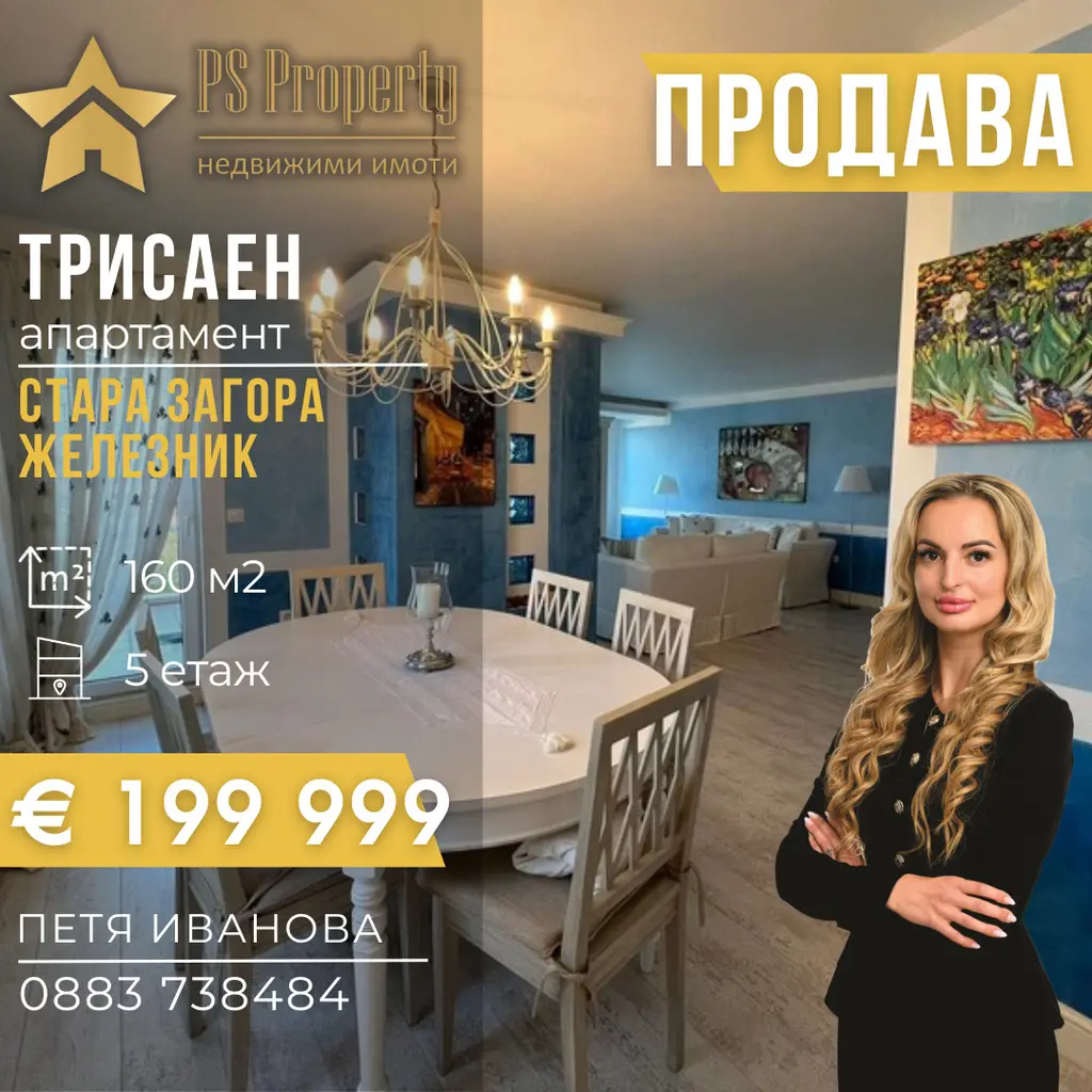 PS Property продава, тристаен апартамент, намиращ се на изключително тих и спокоен район в непосредствена близост до всичко необходимо - хранителни магазини, спирки на градския транспорт, училища, детски градини и други.