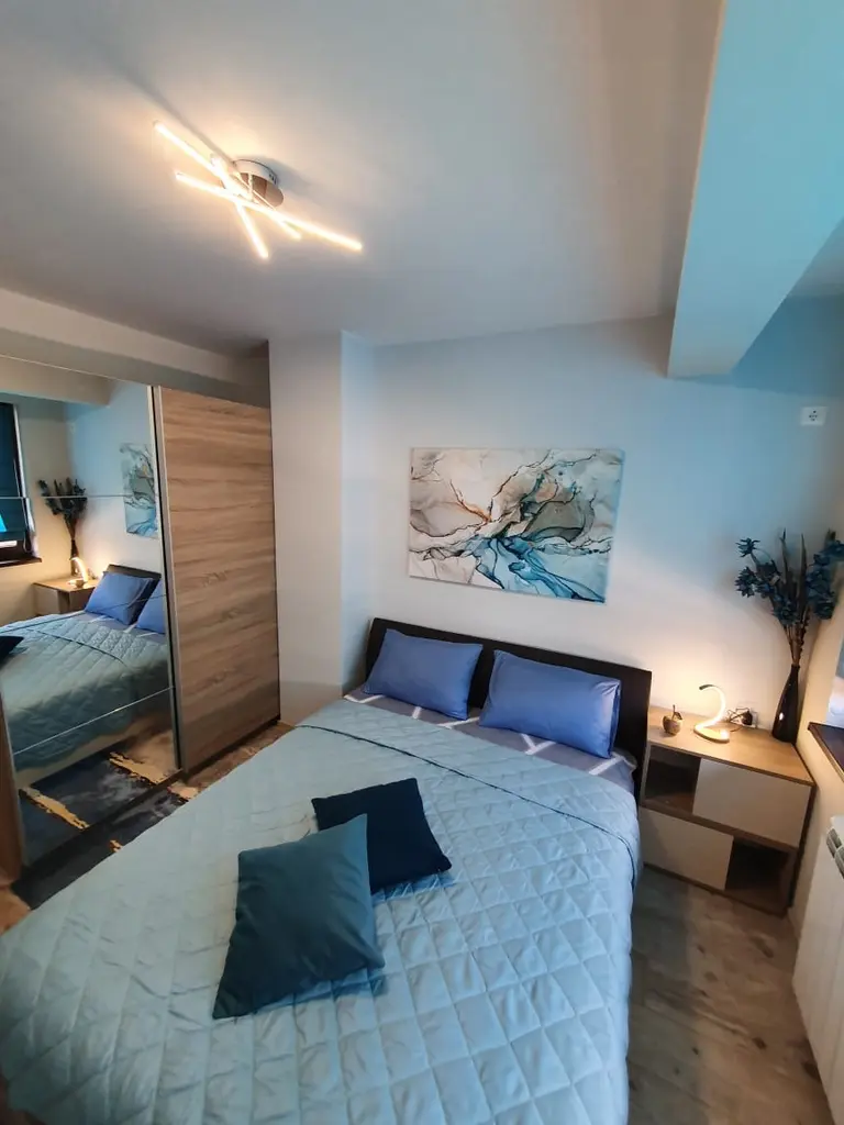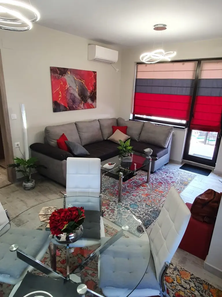 Имотът е внимателно и уютно обзаведен и оборудван с всички необходими мебели и оборудване. Изложение север - запад. Отопление с газ и климатици. Терасата е покрита с тента.