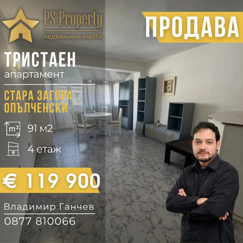 PS Property продава тристаен апартамент в близост до училище, детска градина, спирка на градски транспорт, магазини и други удобства
