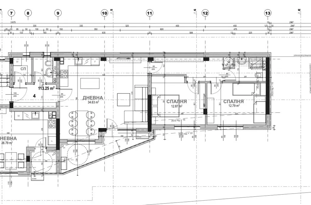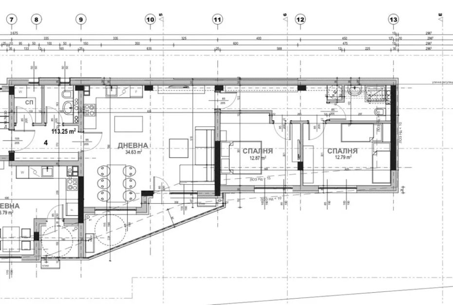 В продажба е апартамент с ползваема площ от 113,25 кв.м, разпределена между: две спални, дневна с бокс, два санитарни възела, складово помещение, тераса.
