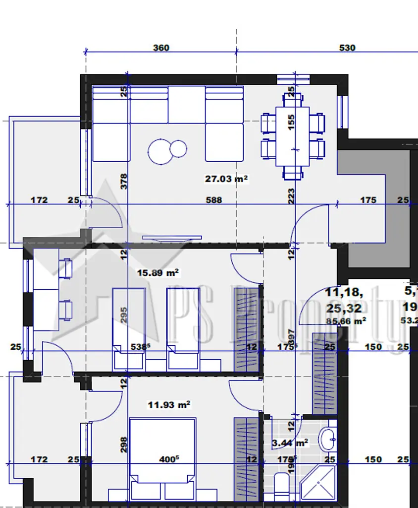 Характеристики: Апартаментът се състои от входно антре, всекидневна с кухненски кът с излаз към тераса, две спални и баня с тоалетна. Сградата е с контрол на достъп и асансьор. Подходящ е както за инвестиция така и за живеене!