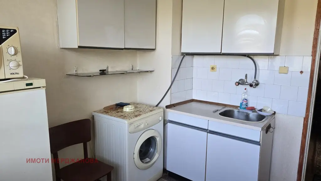 Апартаментът е с чиста застроена площ от 66 кв.м и се състои от кухня с тераса, хол и спалня с голяма тераса, коридор. Избено помещение и таванско помещение на разположение. Сградата е с два асансьора. Добре поддържани общи части. Изложение югозапад. Имотът е за основен ремонт.