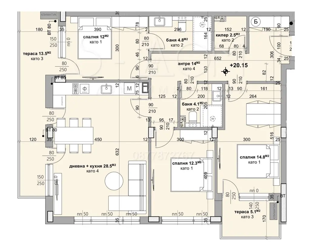Тип строителство: тухла ; етаж: 8 ; квадратура: 153кв.м.,