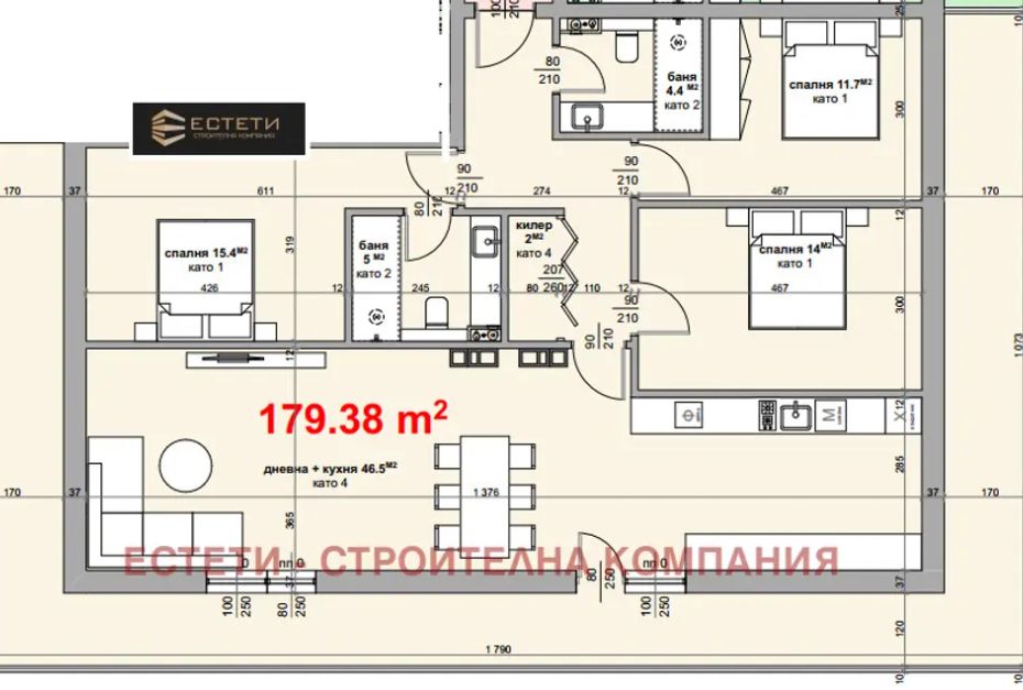 🏡 Многостаен апартамент състоящ се от: антре, дневна с кухня, 3 спални, 2 бани с тоалетна, килер, просторна тераса. Квадратура - 238 кв.м.