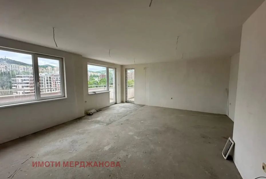 Предлагаме за продажба четиристаен апартамент с три спални, три тераси, две бани и голяма всекидневна с кухненски бокс. Изложение юг - запад - север.