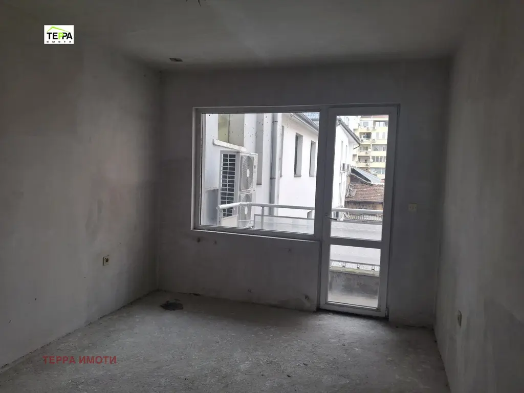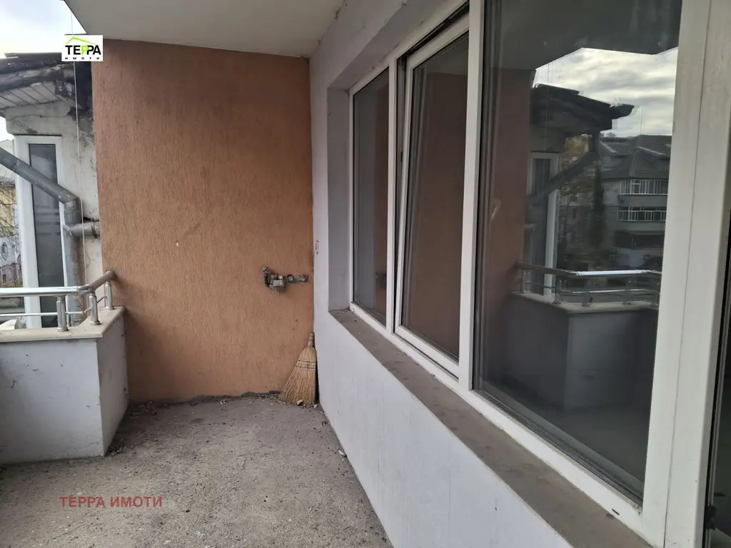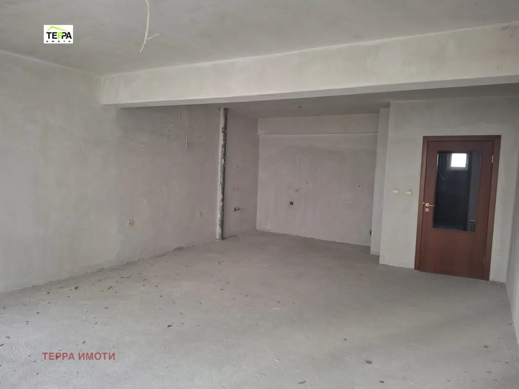Жилището е с обща площ от 100 кв.м,с функционално разпределение, което позволява лесно преустройство според нуждите на новите собственици.Изложението е север/юг, което осигурява естествена светлина и комфорт през целия ден.Апартаментът се предлага в състояние по БДС-шпакловка и замазка, което дава възможност за довършване по индивидуален проект и вкус.Апартаментът е с две тераси- по една към всяка от стаите.Допълнително към имота има стаичка на етажа, подходяща за склад или помощно помещение.Сградата е НС от 2018г, с контролиран достъп и добре поддържани общи части.