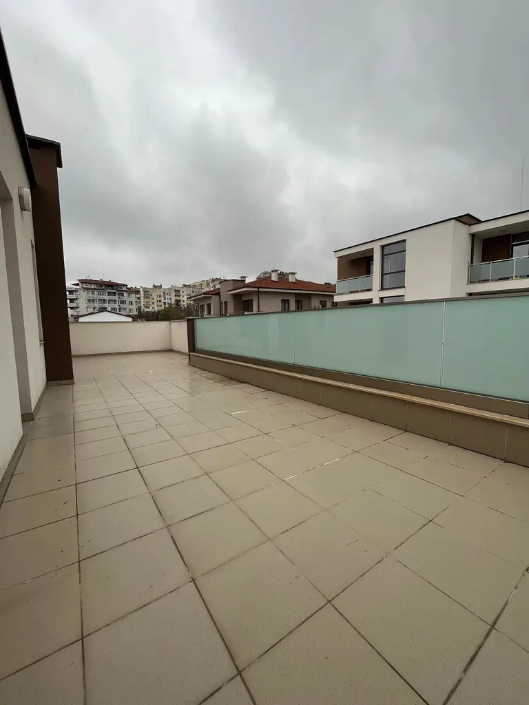 Апартамента е със севрно/източно изложение и се състои от всекидневна с бокс , 2 спални , голям коридор , 2 тераси /едната с големина около 35 м2/,голяма баня с прозорец.