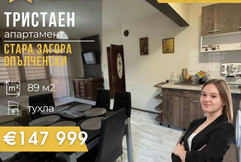 PS Property продава обзаведен тристаен апартамент в близост до училище, детска градина, магазини, ресторанти и други удобства.