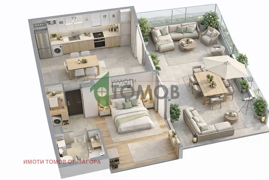 Имоти Томов Стара Загора представя на Вашето внимание чудесен двустаен апартамент с площ от 90.20 кв.м. в кв. Самара 3 - БВЗ КОМИСИОННА ОТ КУПУВАЧА! Жилището е с източно изложение и се намира на девети етаж в новострояща се модерна девететажна жилищна сграда с АКТ 14 и има следното разпределение:
