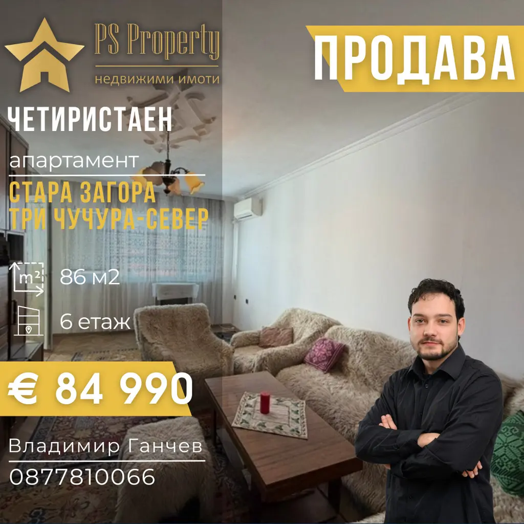 PS Property предлага четиристаен апартамент намиращ се в близост до ,,Автокъща ЗИКО', спирки на градския транспорт, училище, детска градина и други.