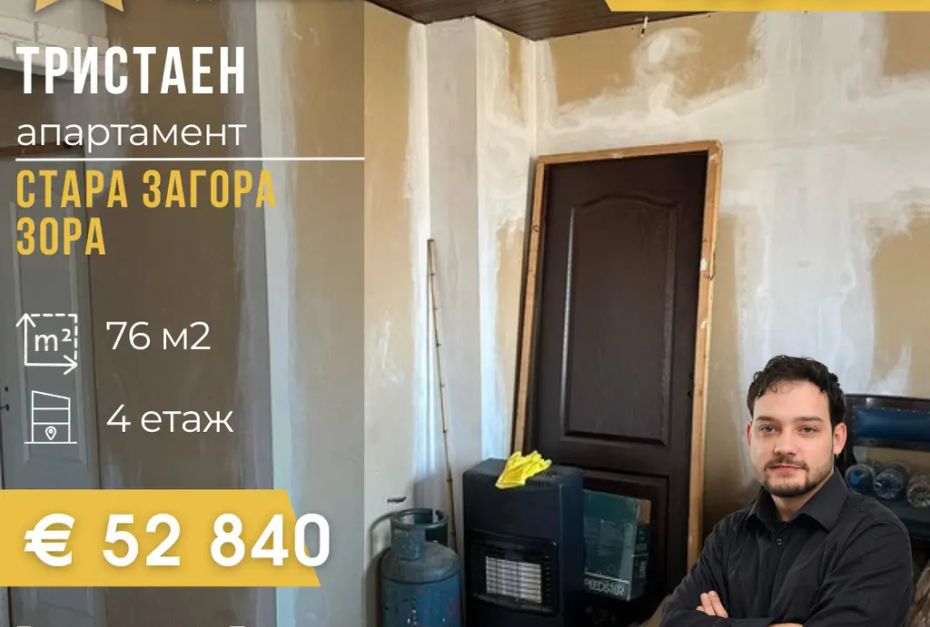 Жилището се намира на четвърти етаж. Жилищна площ от 76 кв.м. Готов за мебелиране.