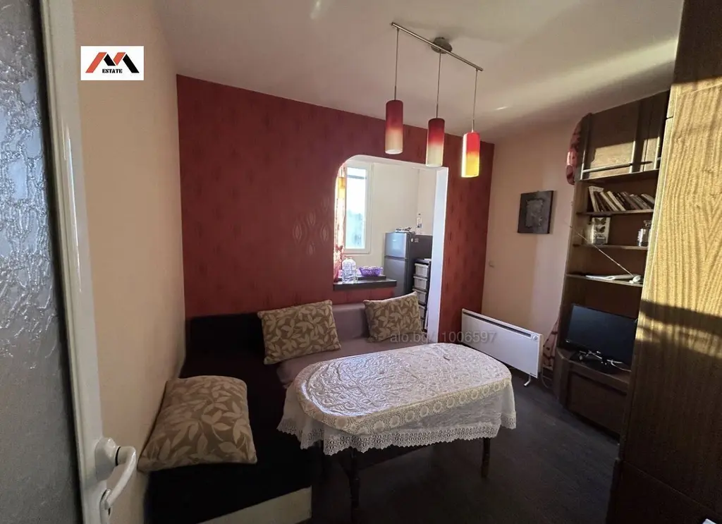 Продава се двустаен апартамент с изцяло южно изложение на 5ти не последен етаж в панелен блок.Жилището е частично санирано и се състои от една спалня, кухня и усвоена тераса преобразена като кухненски бокс.Апартамента е среден и топъл.Подходящ е както за отдаване под наем така и за живеене.Предлага се във вида от снимките .За повече информация и огледи на посочените телефони.