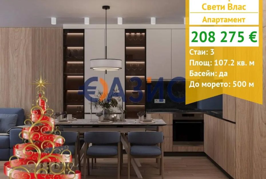 За продажба се предлага тристаен апартамент на 2-ри етаж в новострояща се сграда,близо до морето ,Свети Влас .