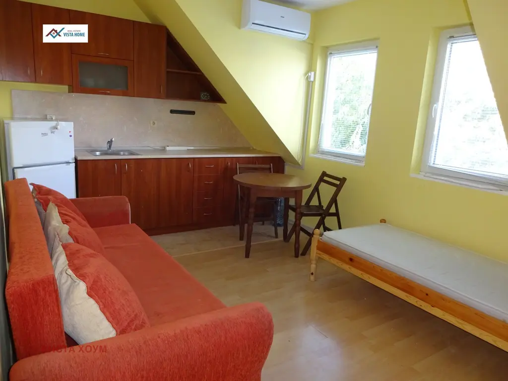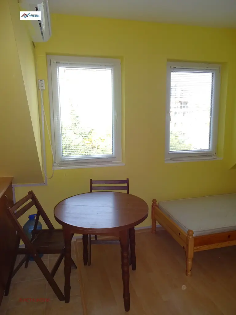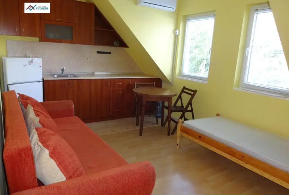 Предлагаме уютна и функционална боксониера в района на Макдрайв и Зимно кино Тракия. Жилището се намира в нова тухлена кооперация, на трети етаж. Състои се от слънчева стая, остъклена тераса с абсорбатор и готварска печка, коридор, баня и тоалет. В дневната има функционални кухненски шкафове с плот, голям хладилник, гардероб, удобен разтегателен диван, легло. Банята е с душ-кабина. Локацията е отлична в пешеходна близост до идеалния център, до спирки на градския транспорт, училища, детски градини.
