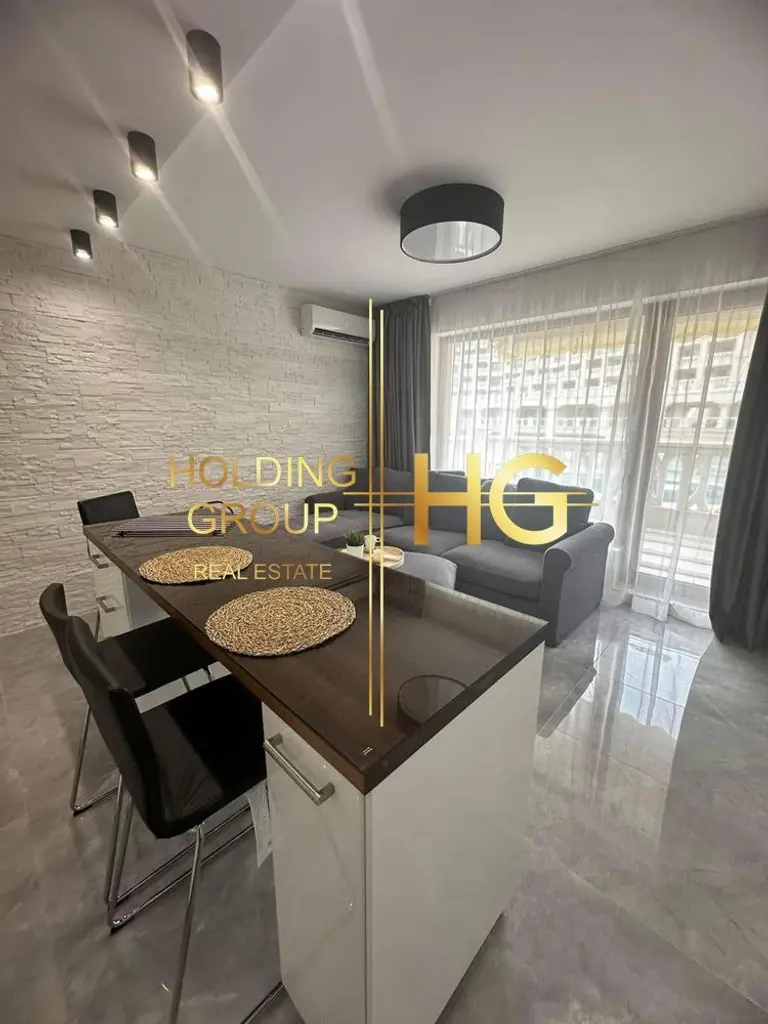 HOLDING GROUP real estate представя на Вашето внимание прекрасен двустаен апартамент в кв. Аспарухово, к-с Саут Бей. Ситуиран е на етаж 2 и се състои от коридор, хубава дневна, спалня, баня с тоалетна и голяма тераса с гледка към басейна. Жилището е напълно обзаведено и оборудвано, готово за нанасяне. Намира се на първа линия, на крачки от плажа. Имотът се намира в комплекс с ограничен достъп: има бариери, чип- система, охрана и видео-наблюдение. Има басейн, кафе-сладкарница, магазини и фитнес зала.