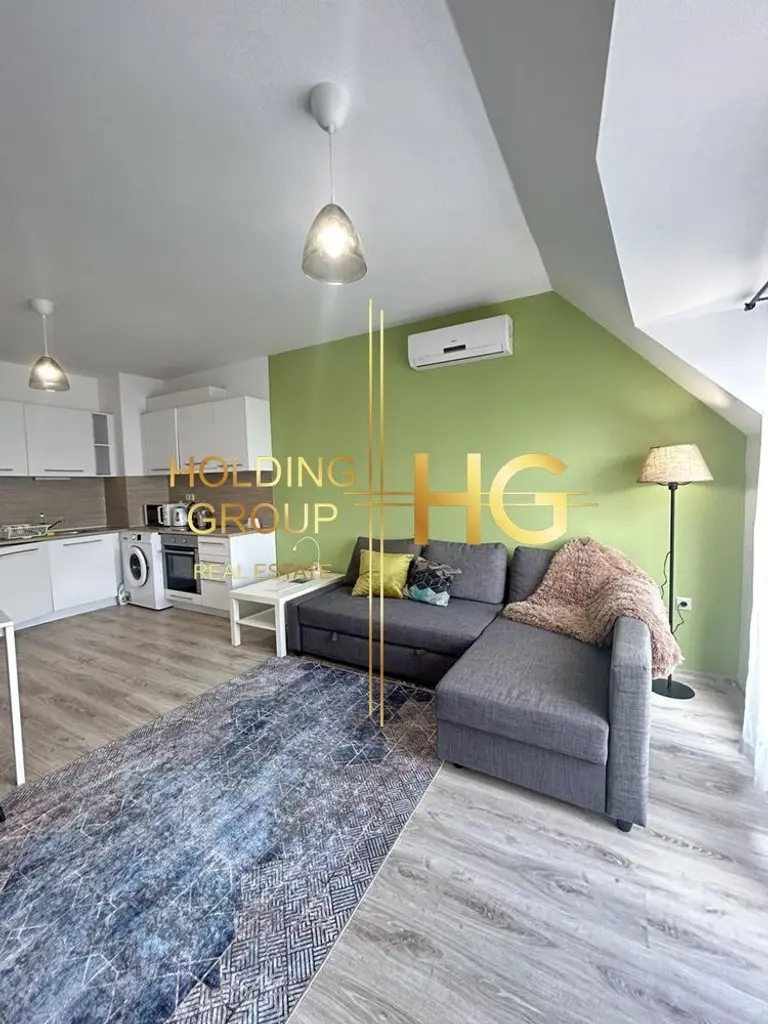 Апартаментът се състои от дневна с кухненска част, спалня, антре/коридор и две панорамни тераси.