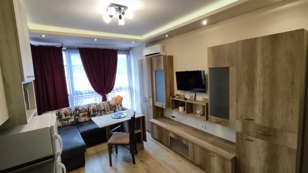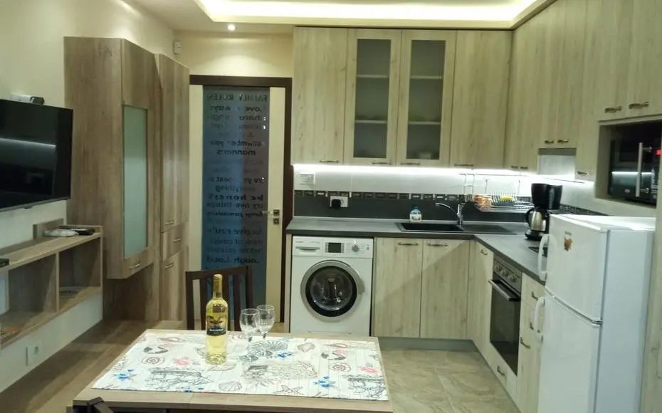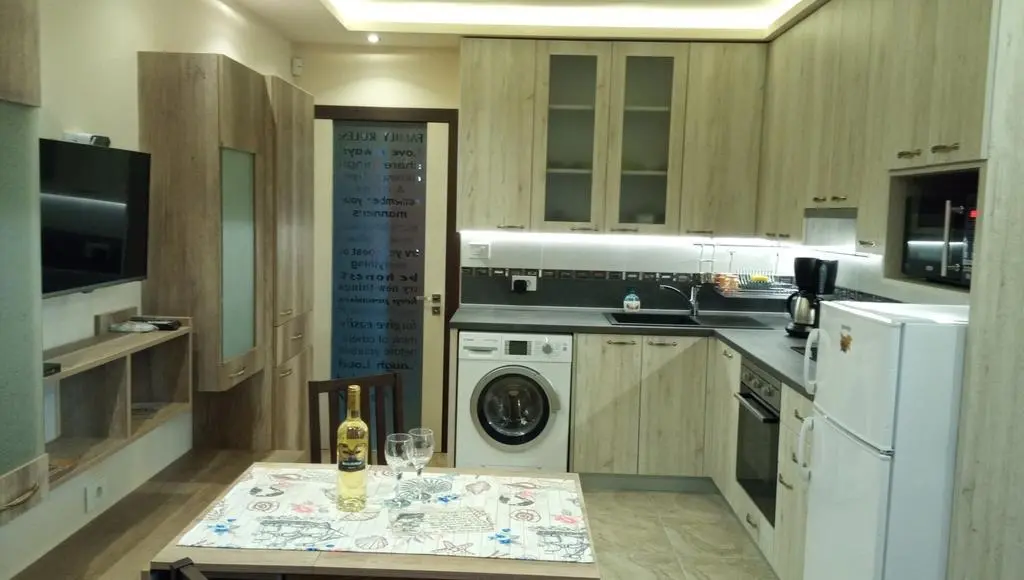 Апартамента е оборудван с всички нужни кухненски прибори и спални комплекти.