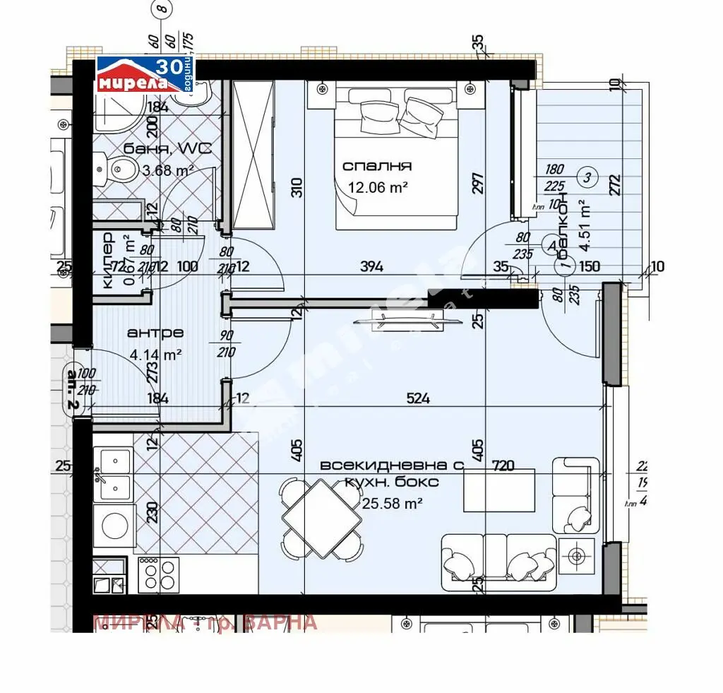 Агенция Мирела предлага за продажба двустаен апартамент в новострояща се сграда в жк. Младост, гр. Варна.