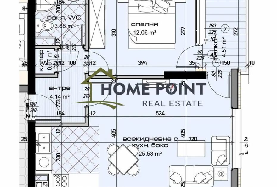ХОУМПОЙНТ предлага Двустаен апартамент,БЕЗ КОМИСИОННА от купувача в луксозен жилищен комплекс на супер комуникативно място, където има всичко необходимо.В комплекса ще има озеленен парк с алеи, пейки за отдих, осветление, търговски комплекс с магазини и още други удобства за живущите. В сградата за сега има и други двустайни и тристайни апартаменти, както и перкоместа. Може да си изберете етаж. изложение, резпределение, квадратура и т.н. За повече информация се свържете с нас. Брокер Веселин Йорданов тел; 0899 889 109