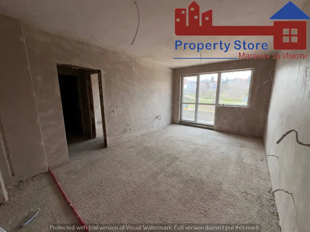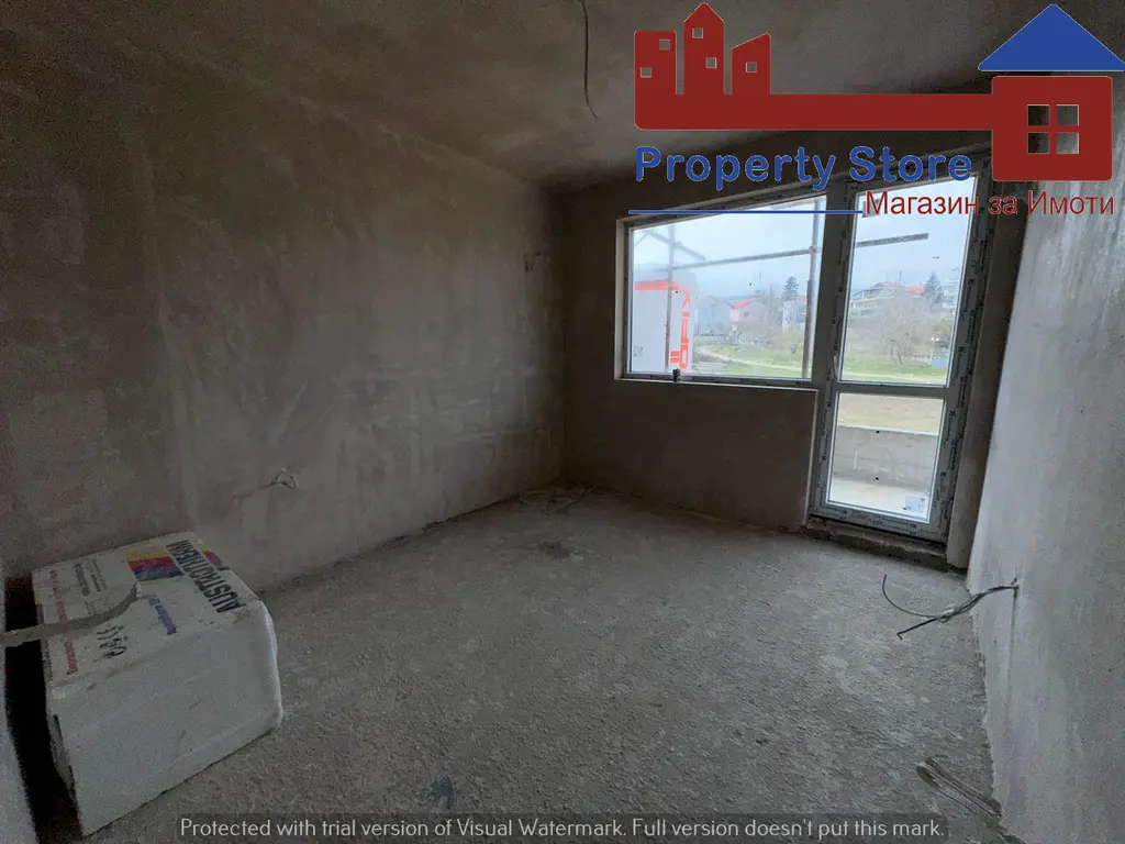 - Разпределение: просторна всекидневна с кухненски бокс, спалня с дрешник, баня с тоалет, тераса с излаз от двете стаи.